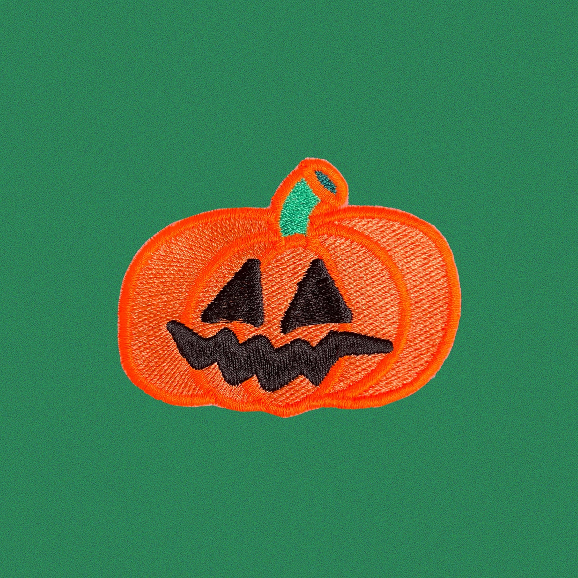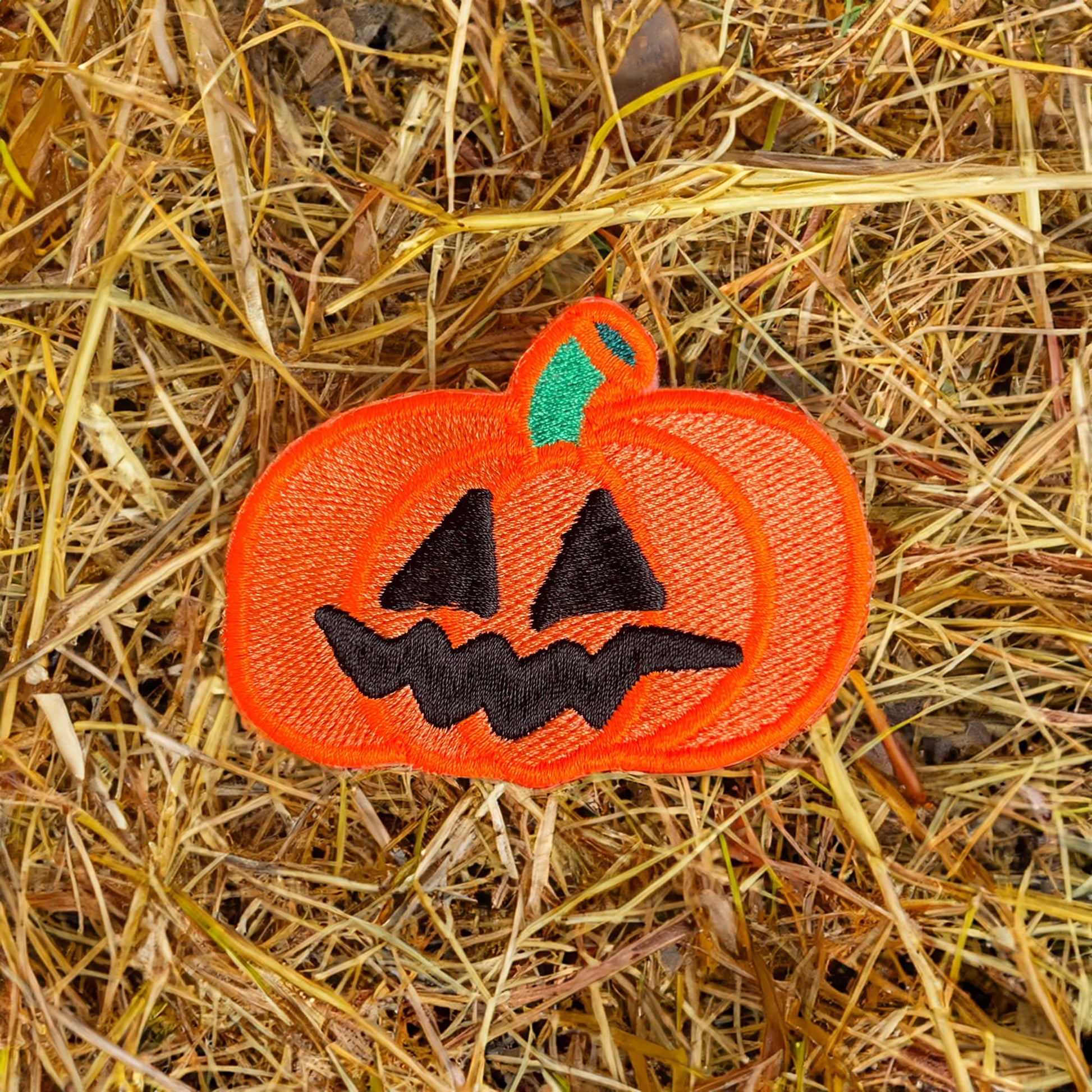 It's a cute little squished pumpkin patch! Perfect addition to your favorite jacket, backpack, or just about anything fabric. The pumpkin itself is embroidered with a peachy orange and finished with a neon orange outline.